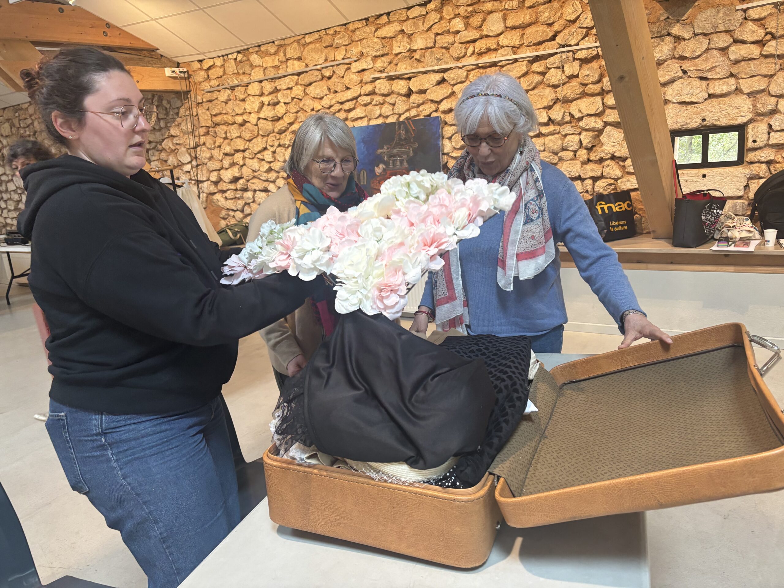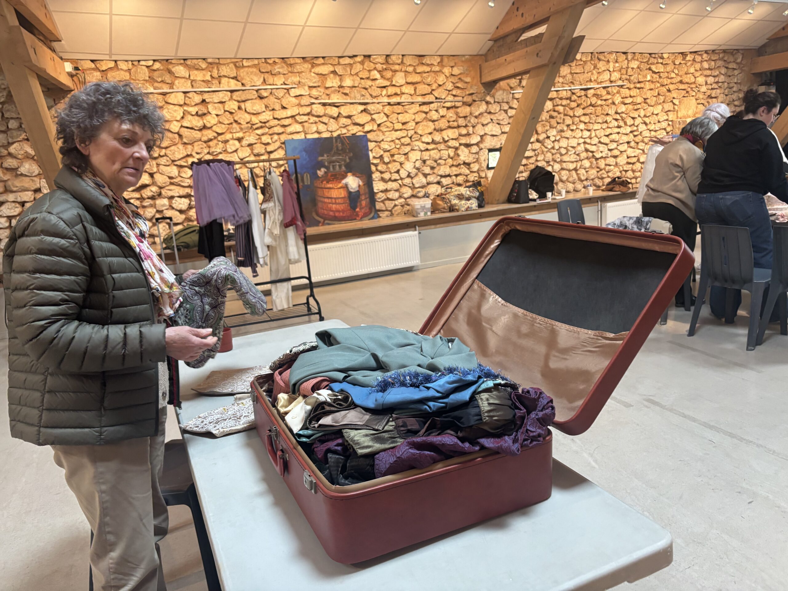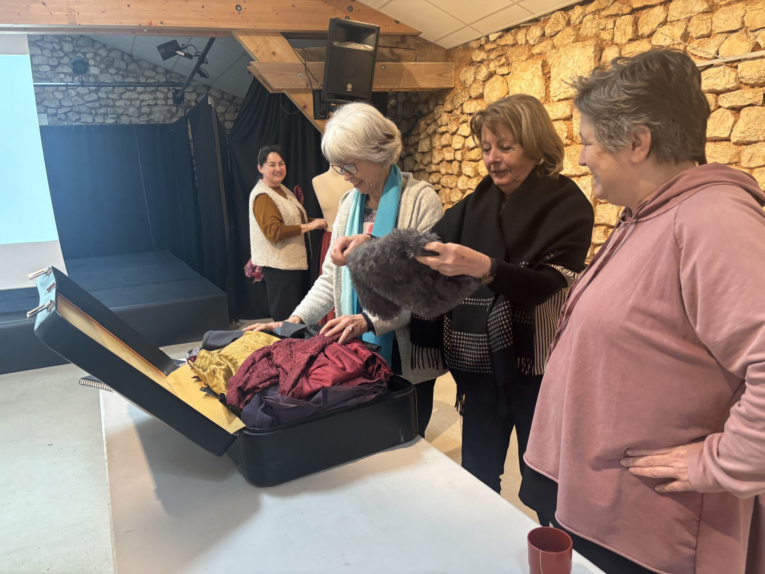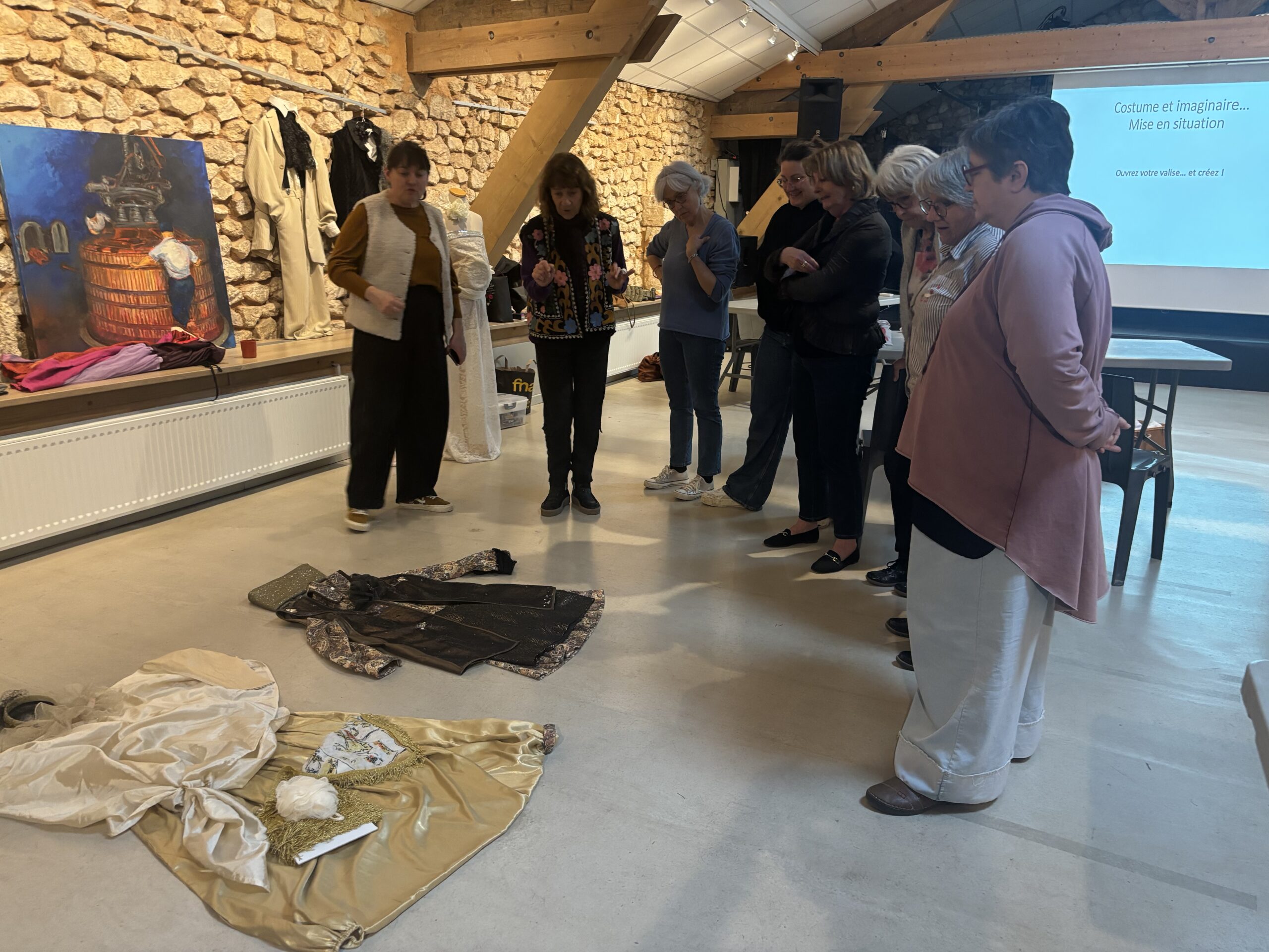 Un stage parfait en tous points ! Notre intervenante a su nous captiver de bout en bout, faisant preuve d’une grande pédagogie, illustrant son propos de multiples créations réalisées au cours de son parcours de costumière de théâtre, stimulant notre imagination et répondant sans relâche à nos questions. Et la pratique était au rendez-vous, pour notre plus grand plaisir ! L’ouverture des valises fut un grand moment, la possibilité ainsi offerte de créer des personnages de théâtre à partir des pièces et accessoires sélectionnés par Cécile, nous combla ! Journée magnifique durant laquelle on a vraiment bien travaillé, créé et partagé !