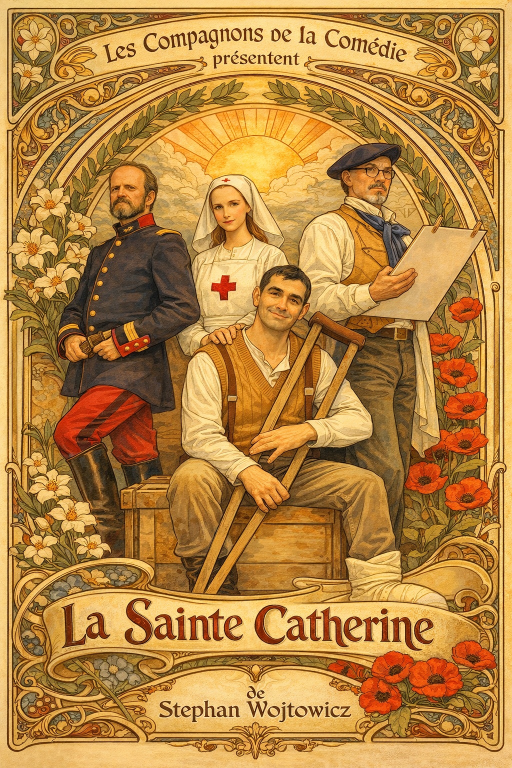 A l'issue de la guerre de 14, dans un hôtel transformé en hôpital militaire, un sculpteur, Gilbert Grancouraud qui porte en haute estime son art et sa personne, cherche un modèle pour réaliser le 1er monument aux morts. Le capitaine Cazeaux, responsable dépassé par les évènements et très fier de ses galons, l'aidera-t-il dans sa démarche ? Alphonse Plumet, simple soldat ayant laissé un pied au front, sera-t-il l'heureux élu ? La charmante Catherine, infirmière au caractère entier, totalement dévouée à sa tâche, cèdera-t-elle aux avances de l'artiste ? Une seule façon de le savoir ….. venir voir. Avec, par ordre d'entrée en scène, Yannick Fernandez (le soldat Plumet), Sandra Escudé (l'infirmière Catherine), Patrick Hosotte (le sculpteur Grancouraud), Hervé Labelle (le capitaine Cazeaux). Mise en scène: Hervé Labelle